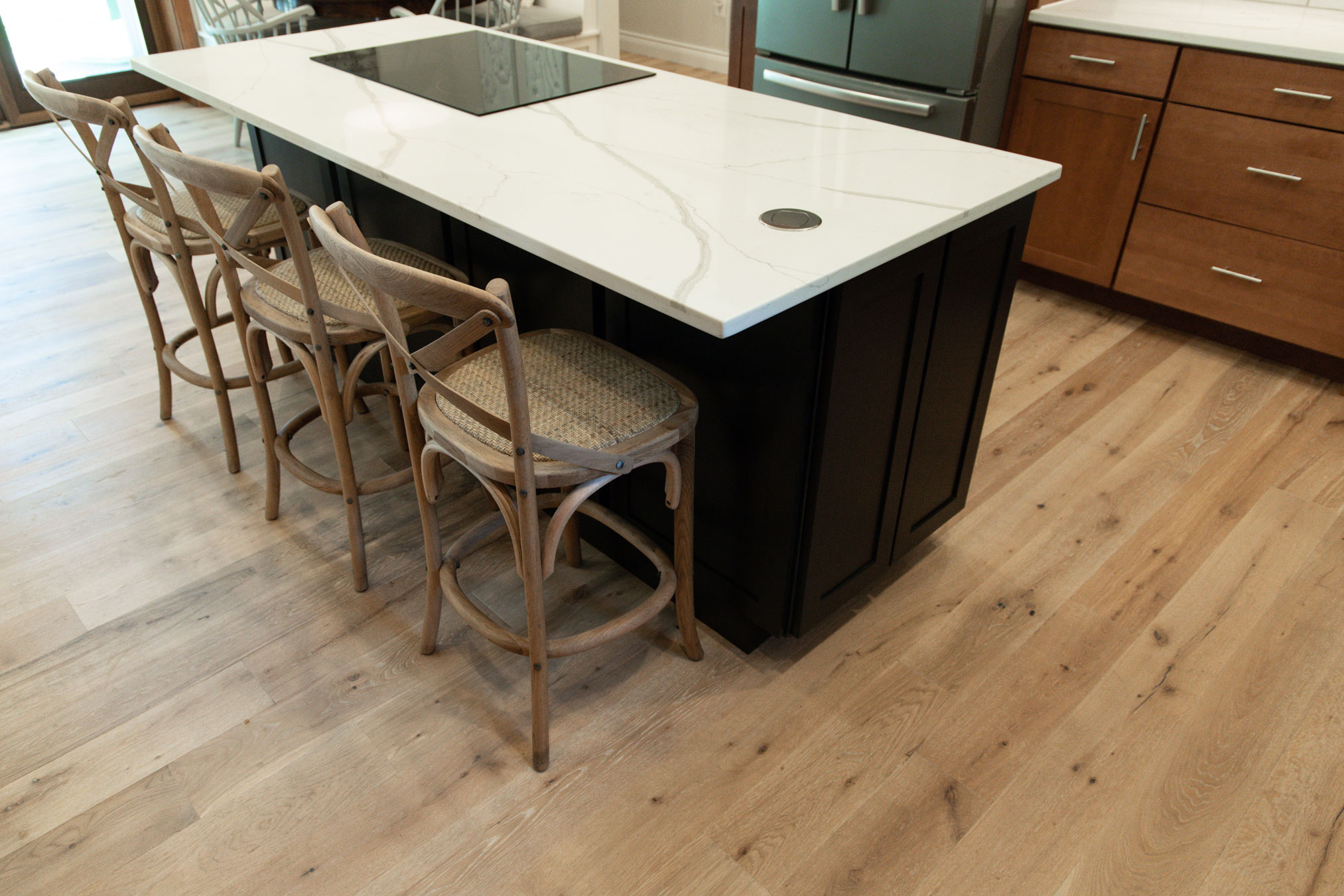 Yellow hues with fine grains… the characteristics of aromatic Sandalwood. Although made with Live Sawn White Oak, our Sandalwood flooring features the qualities of true sandalwood with mild yellow undertones and a fine white grain fill. Quickly becoming a favorite in our showroom, Sandalwood is the perfect neutralizer for any home style.