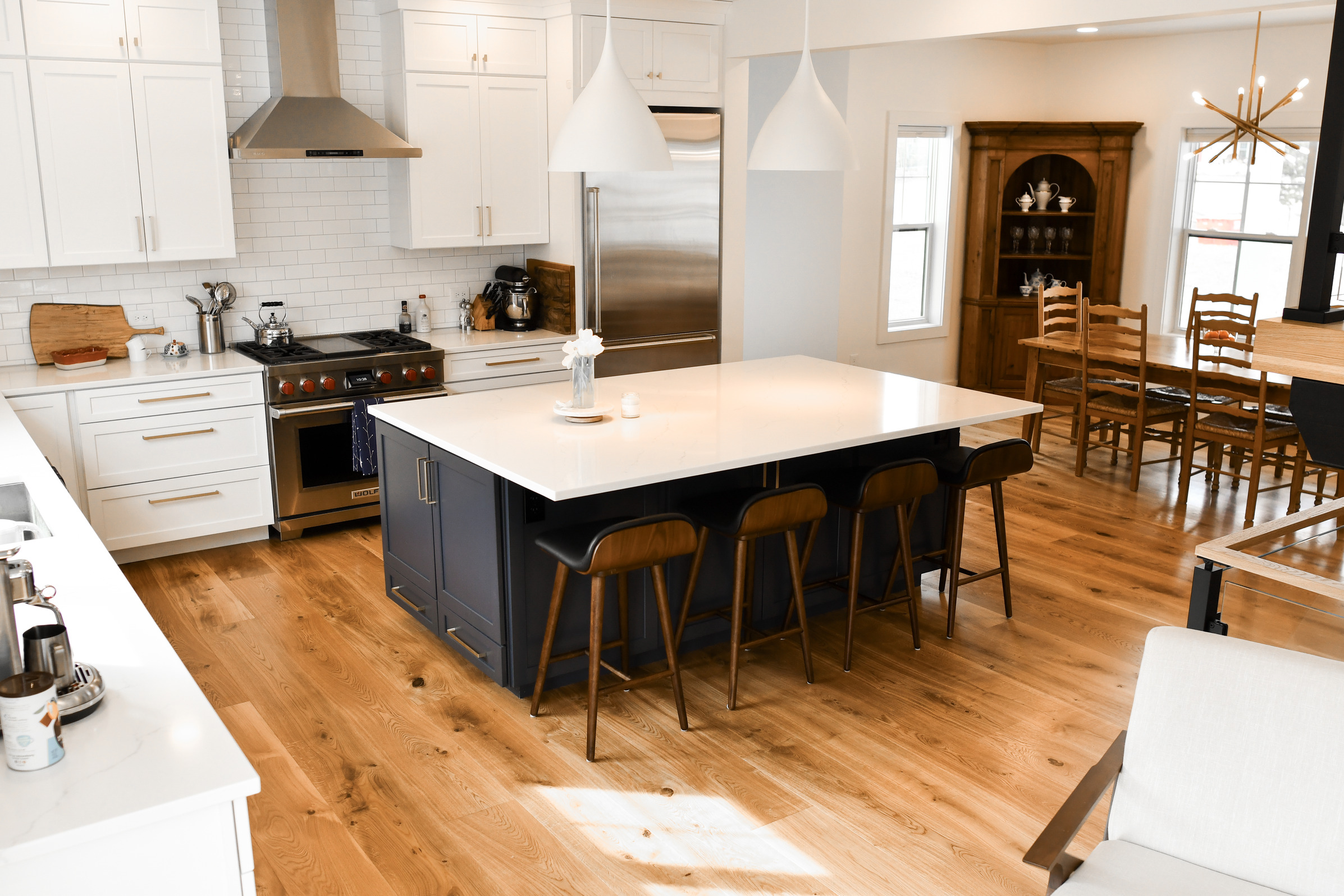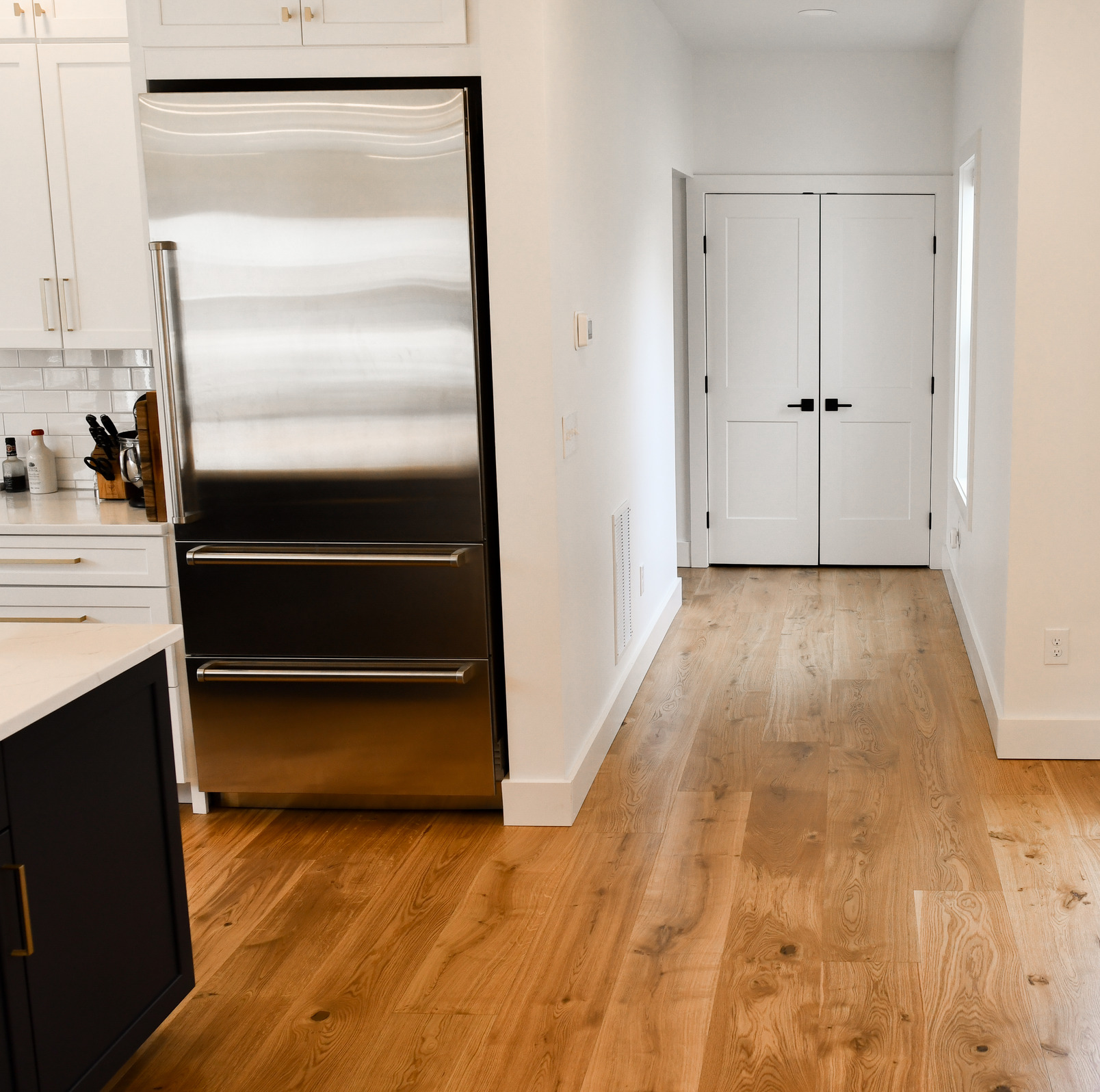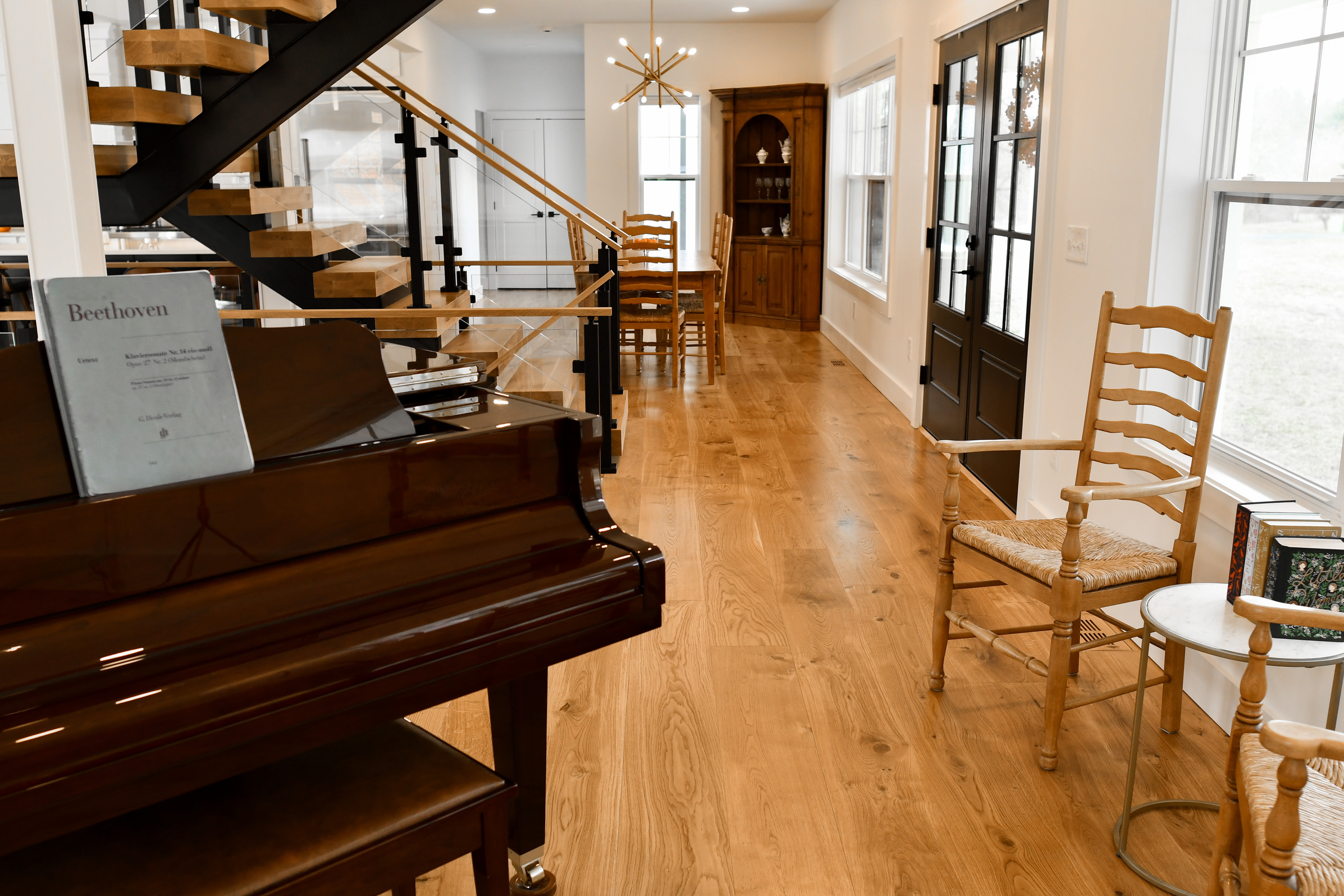 This stunning home, made in collaboration with J&L Builders, exudes both sophistication and an unmistakably welcoming presence. What better choice than our wide plank ¾” x 9.44” European White Oak, finished in our warm and timeless “Natural” finish. With inviting tones that draw you in and don’t let go, this floor is the perfect complement to a space that feels as good as it looks — a natural fit for a naturally beautiful home.