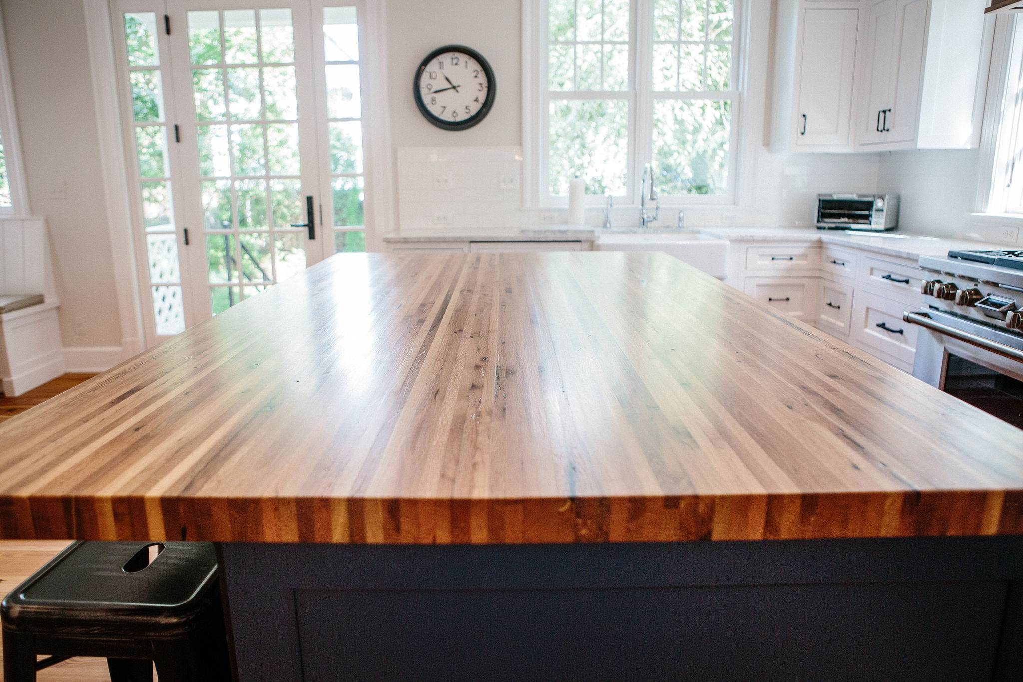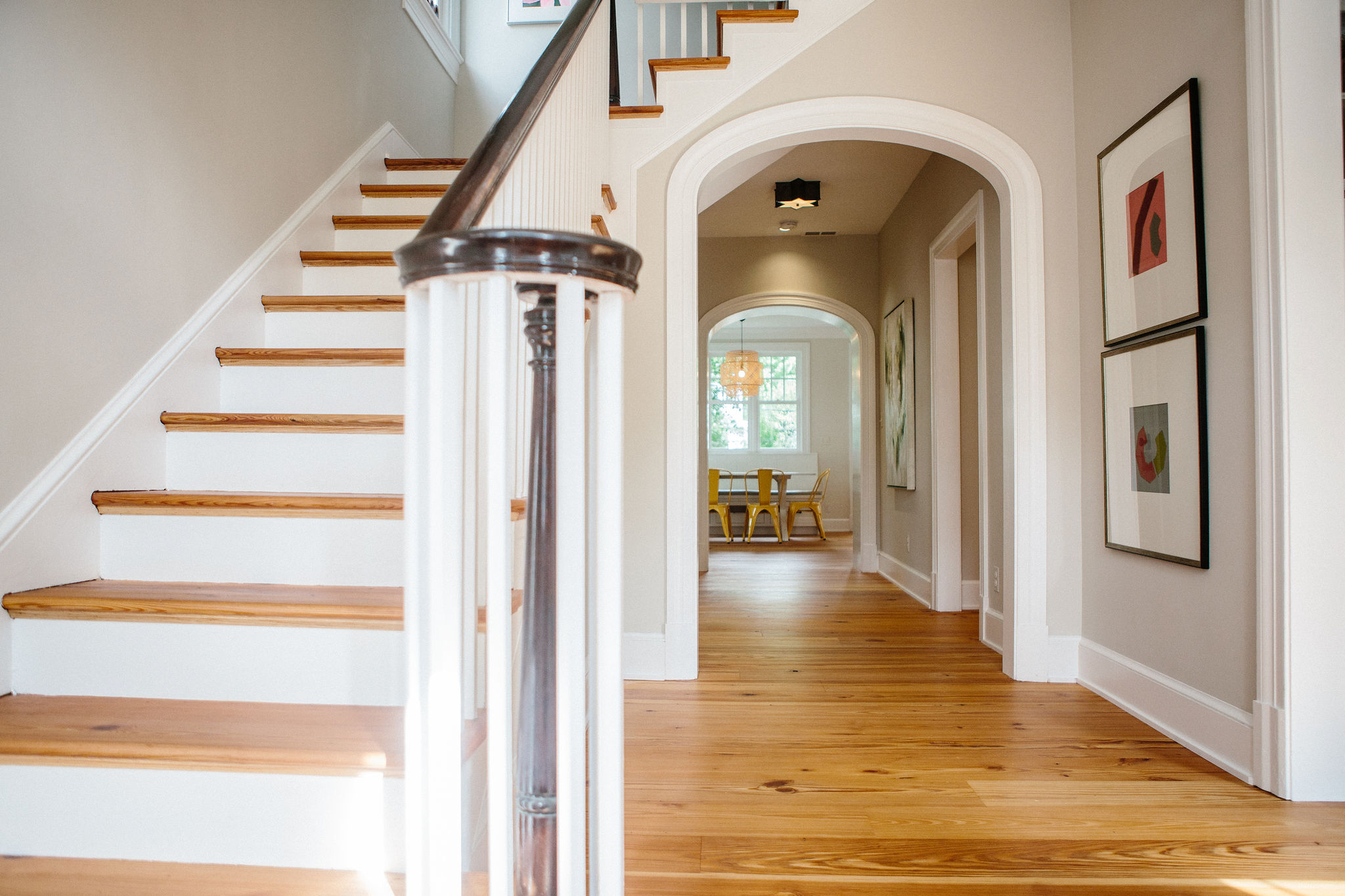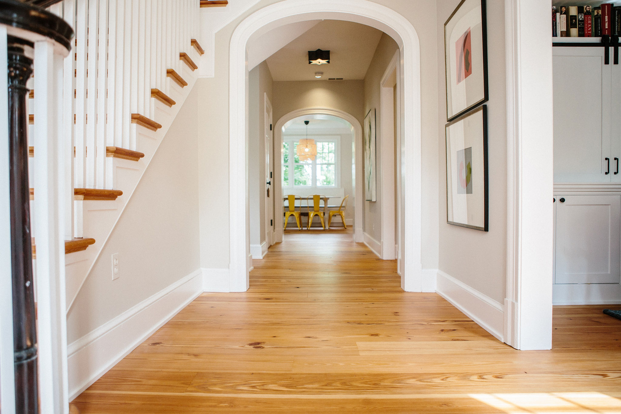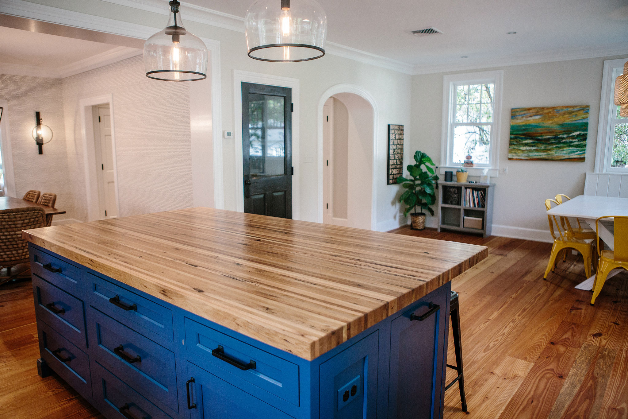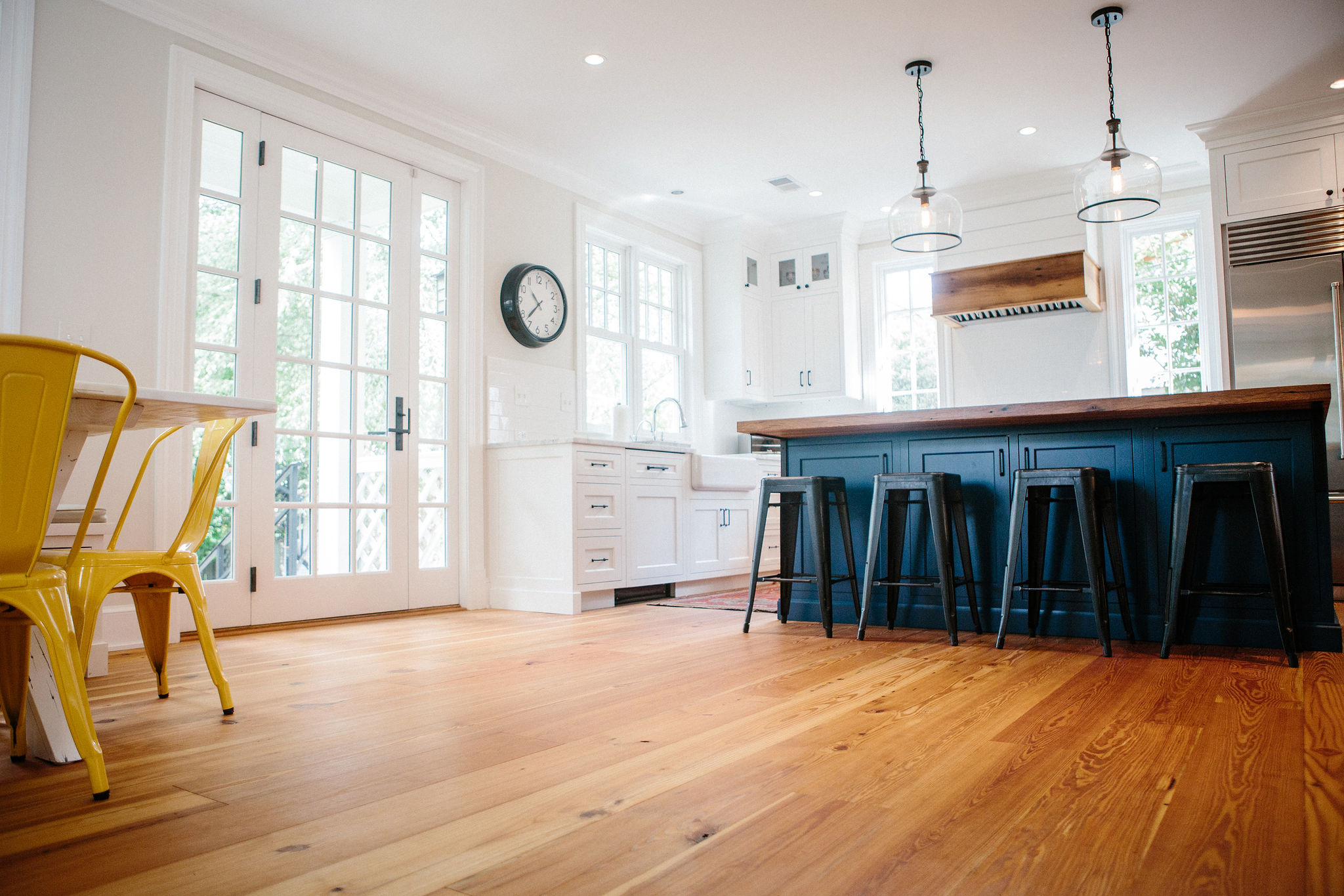 When our friends at Finn Construction Company, Inc. took on the tedious task of renovating a 1930s brick bungalow in Alexandria, VA, they turned to Cochran’s Lumber for period-appropriate flooring. The results are a stunning open concept space that embraces both the home’s history with our wide-plank Heart Pine flooring and its functionality with our gorgeous Antique Oak butcher block kitchen island and countertop.