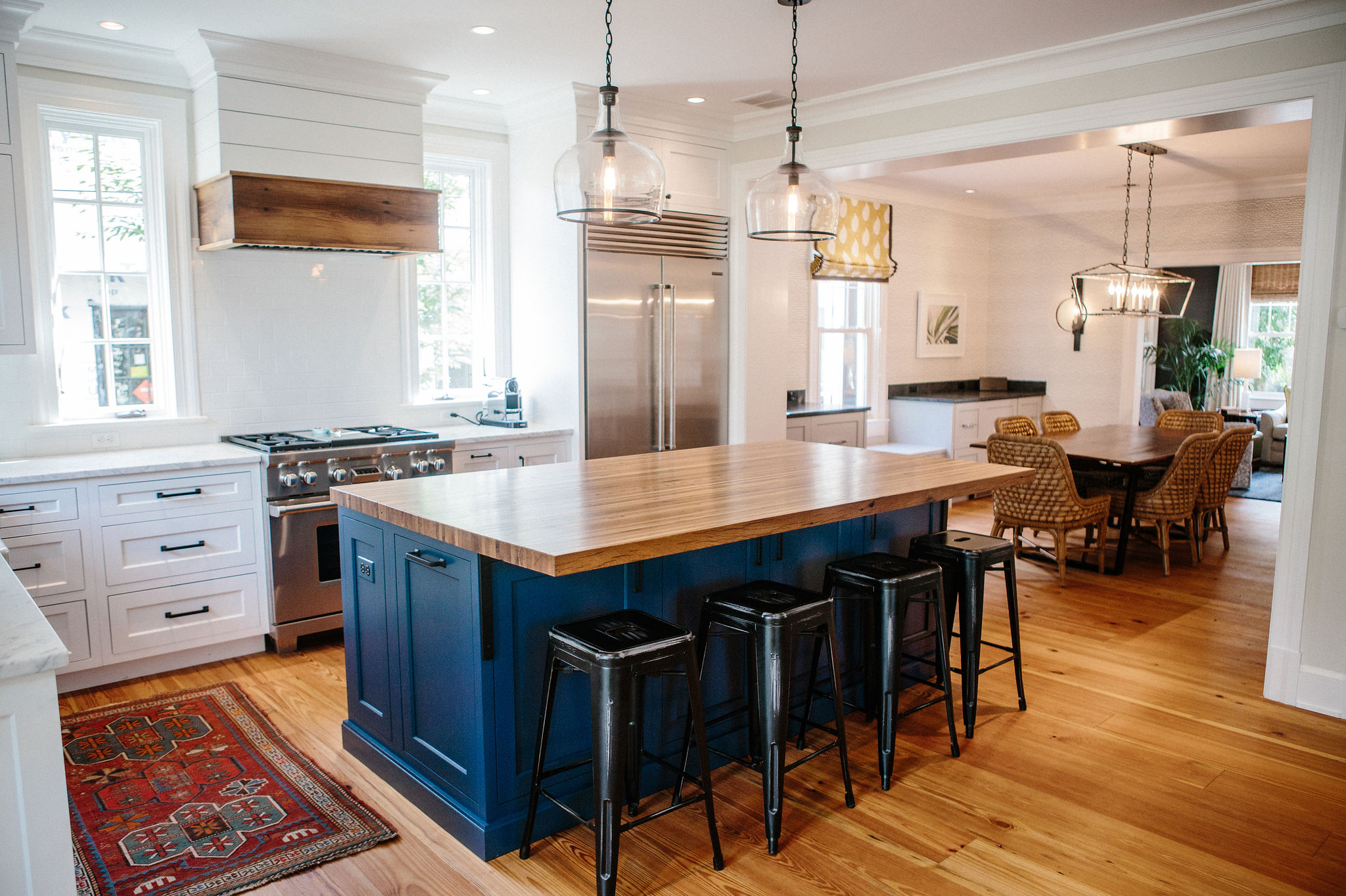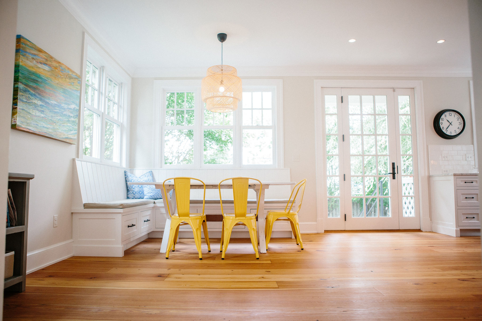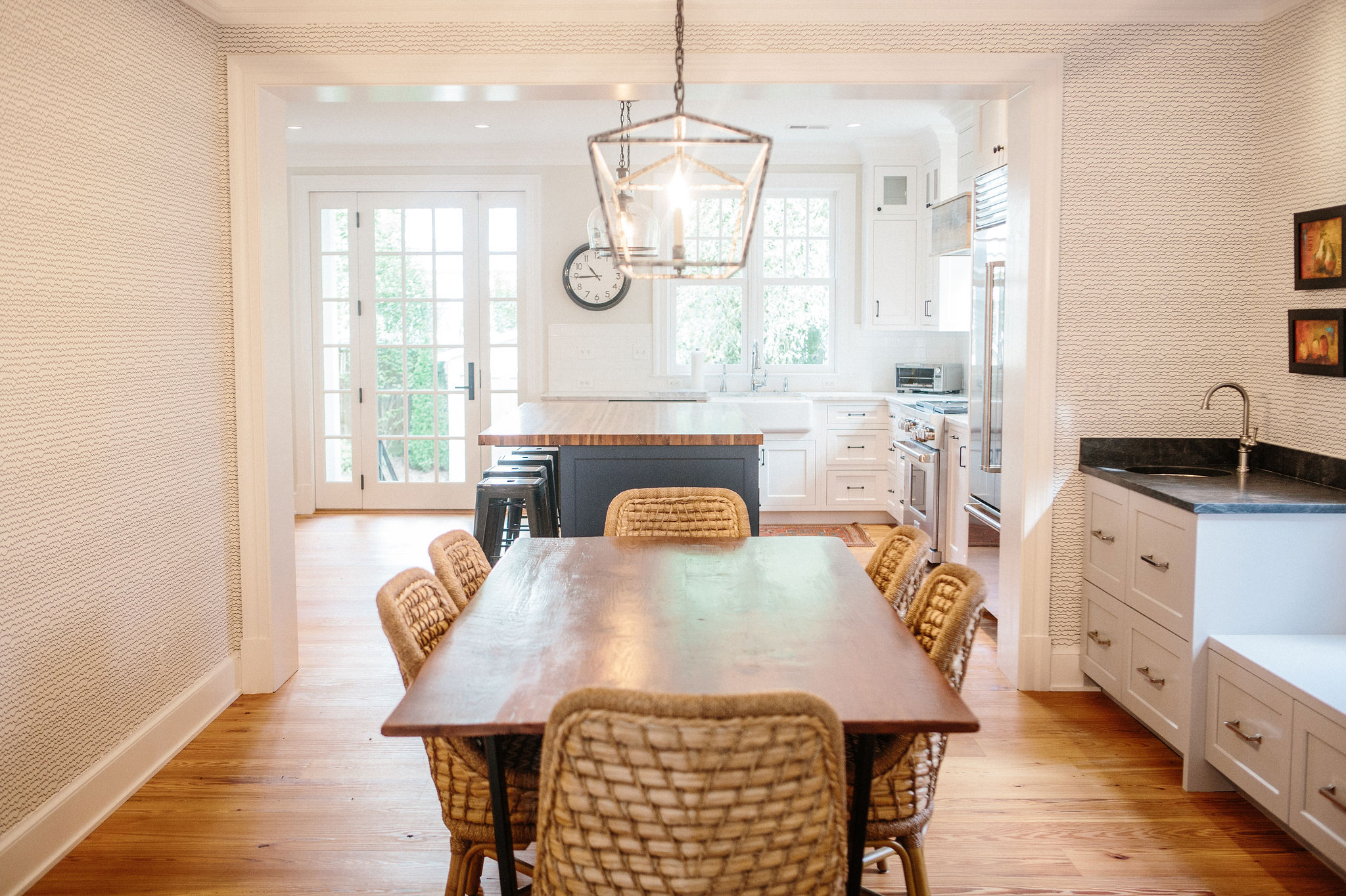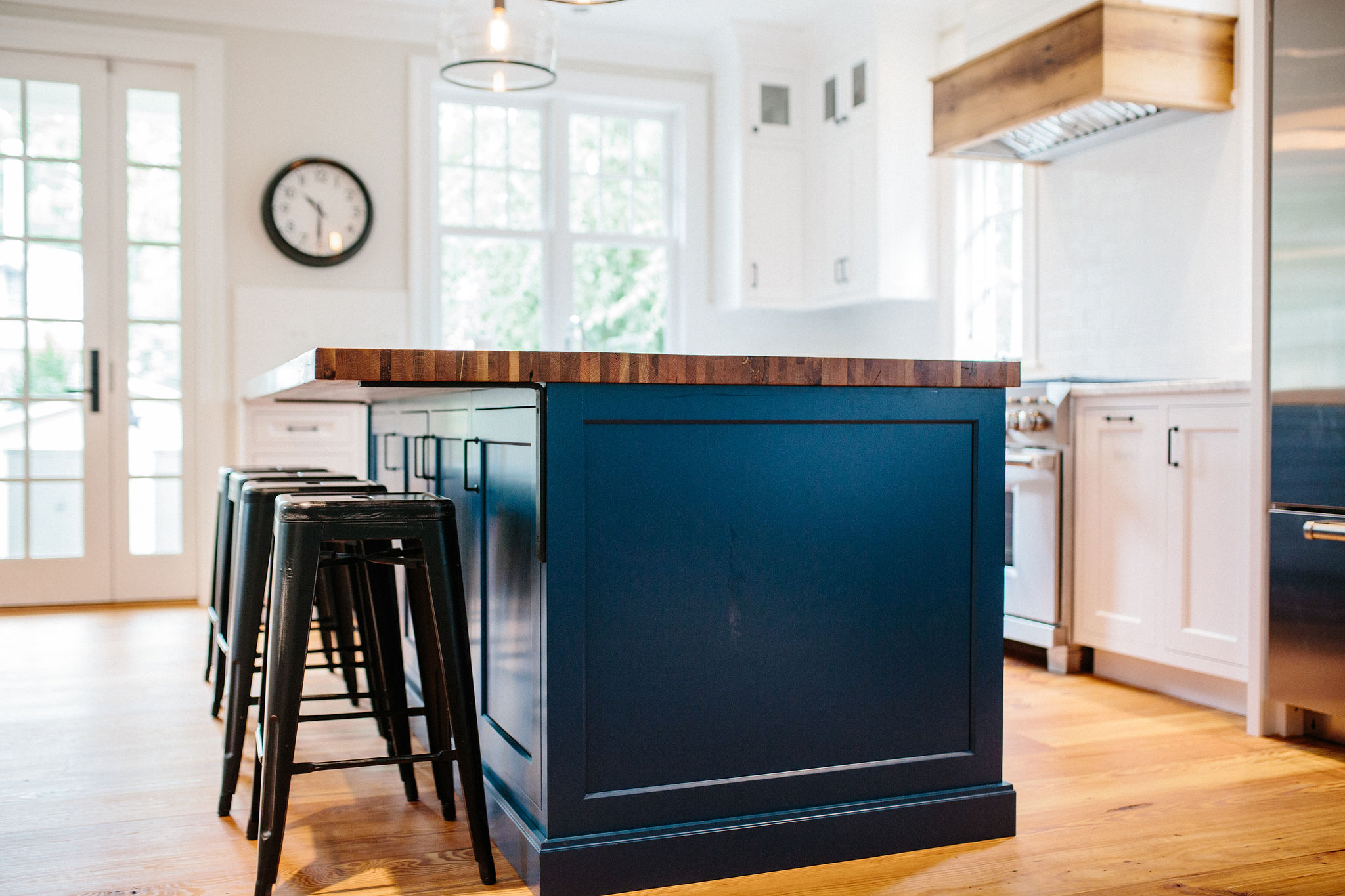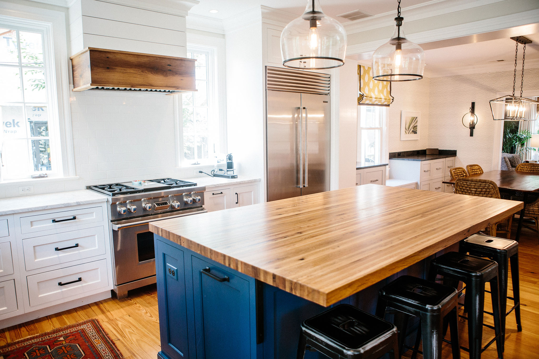 When our friends at Finn Construction Company, Inc. took on the tedious task of renovating a 1930s brick bungalow in Alexandria, VA, they turned to Cochran’s Lumber for period-appropriate flooring. The results are a stunning open concept space that embraces both the home’s history with our wide-plank Heart Pine flooring and its functionality with our gorgeous Antique Oak butcher block kitchen island and countertop.