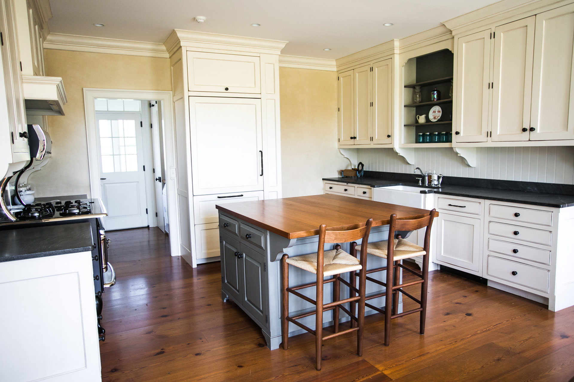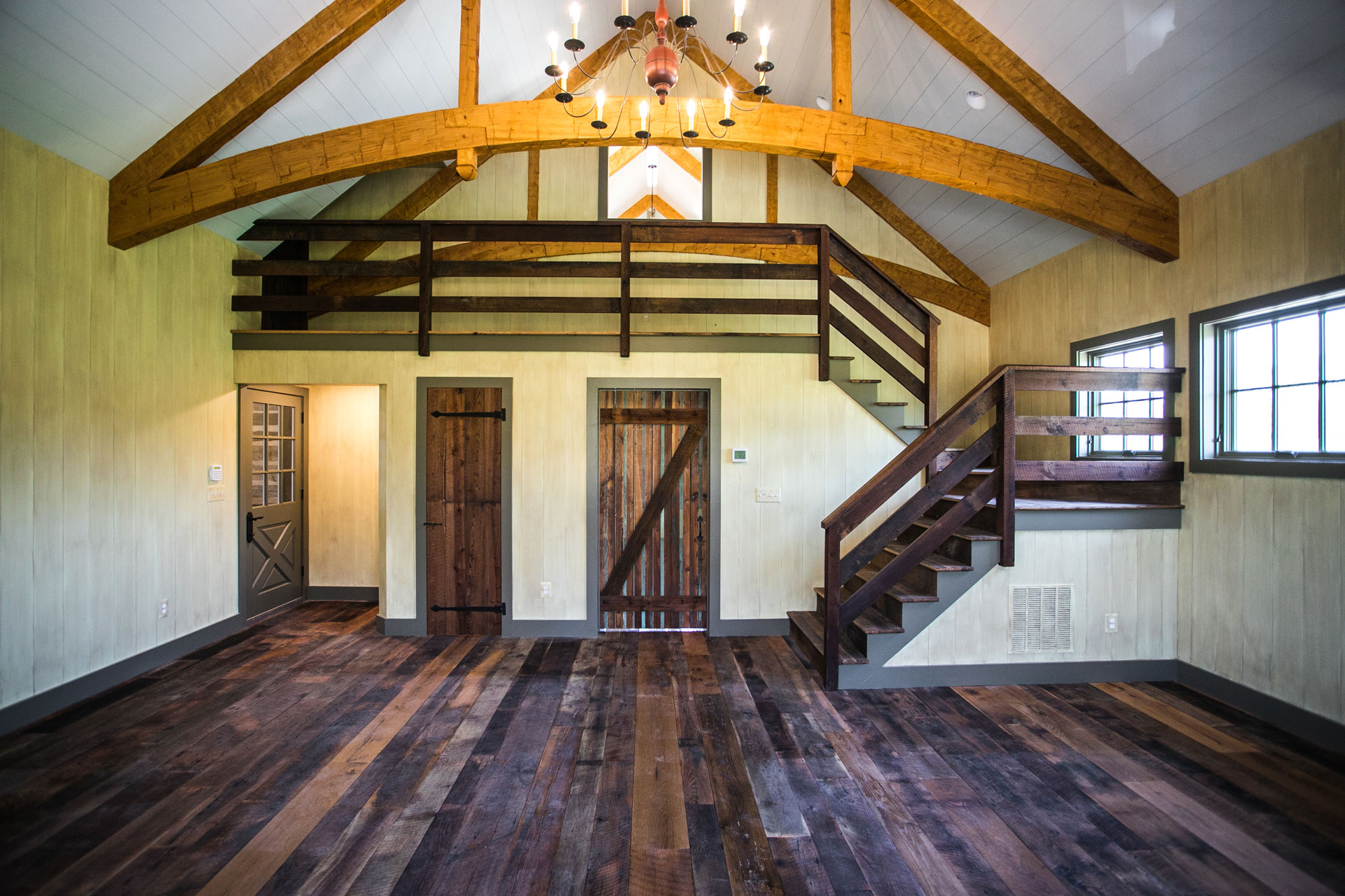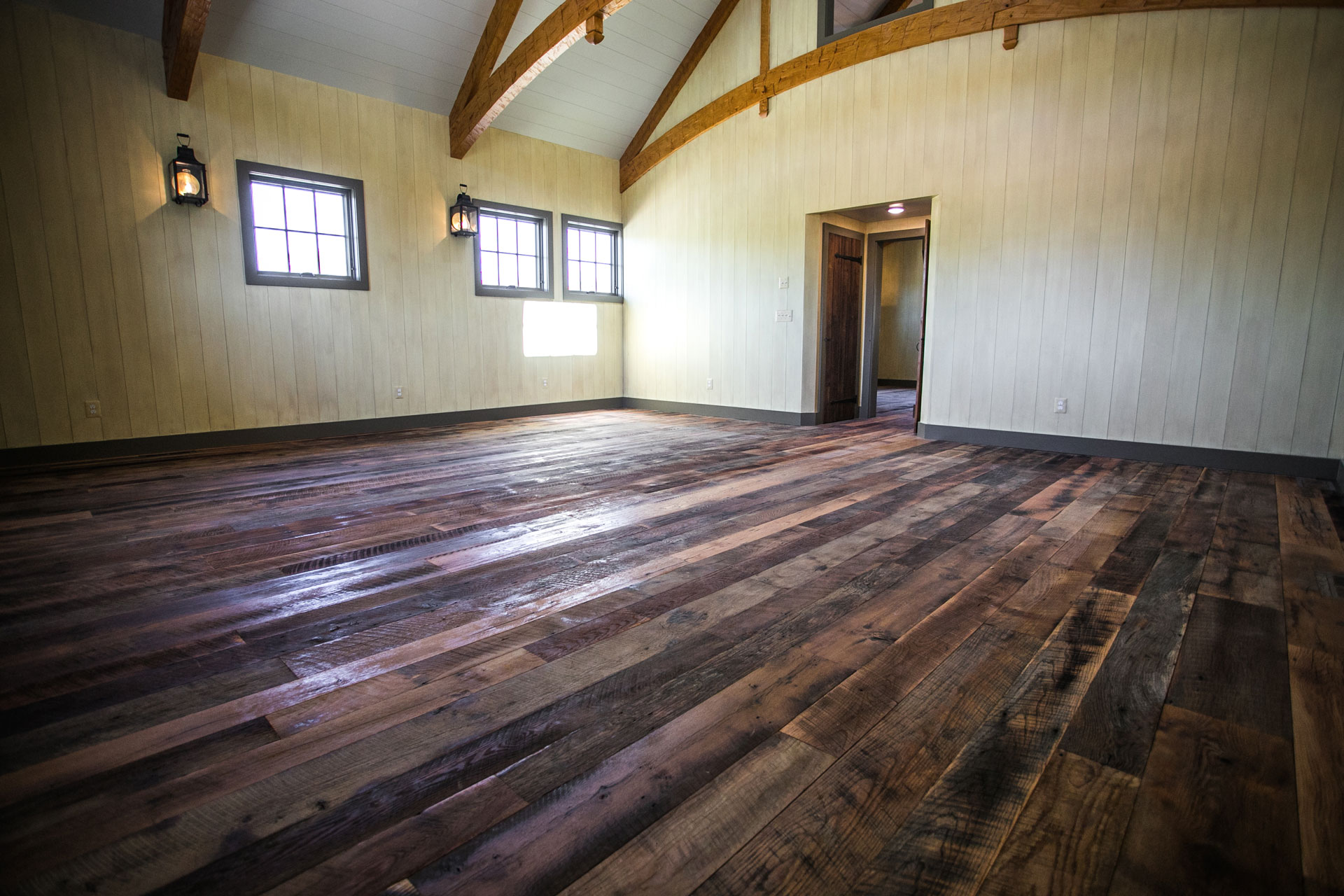 Miller and Blackwell chose our period-appropriate Antique Heart Pine – Farmhouse flooring for the main home remodel and our Antique Oak – Distressed flooring for their entertaining barn. The result is a genuinely American, rustic feel throughout the home and barn.