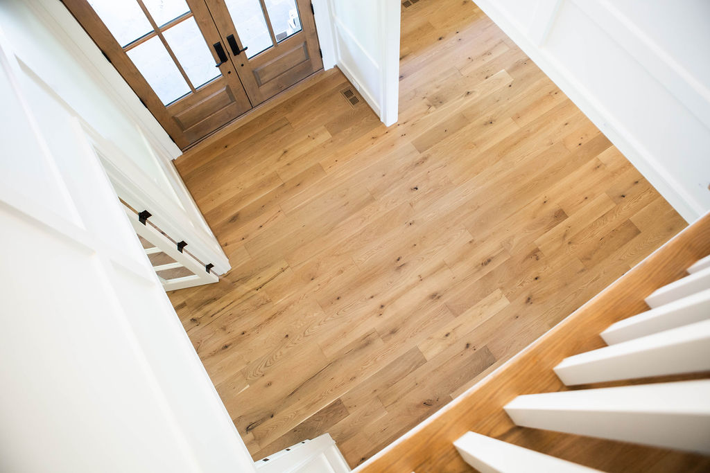 This Novella Homes project features 7″ wide planks of our Live Sawn White Oak, treated with an Invisible Fumed finish to enhance the natural beauty of the wood while providing a subtle, yet detailed look. The flooring seamlessly integrates with the home’s architecture, adding warmth and character to every room.