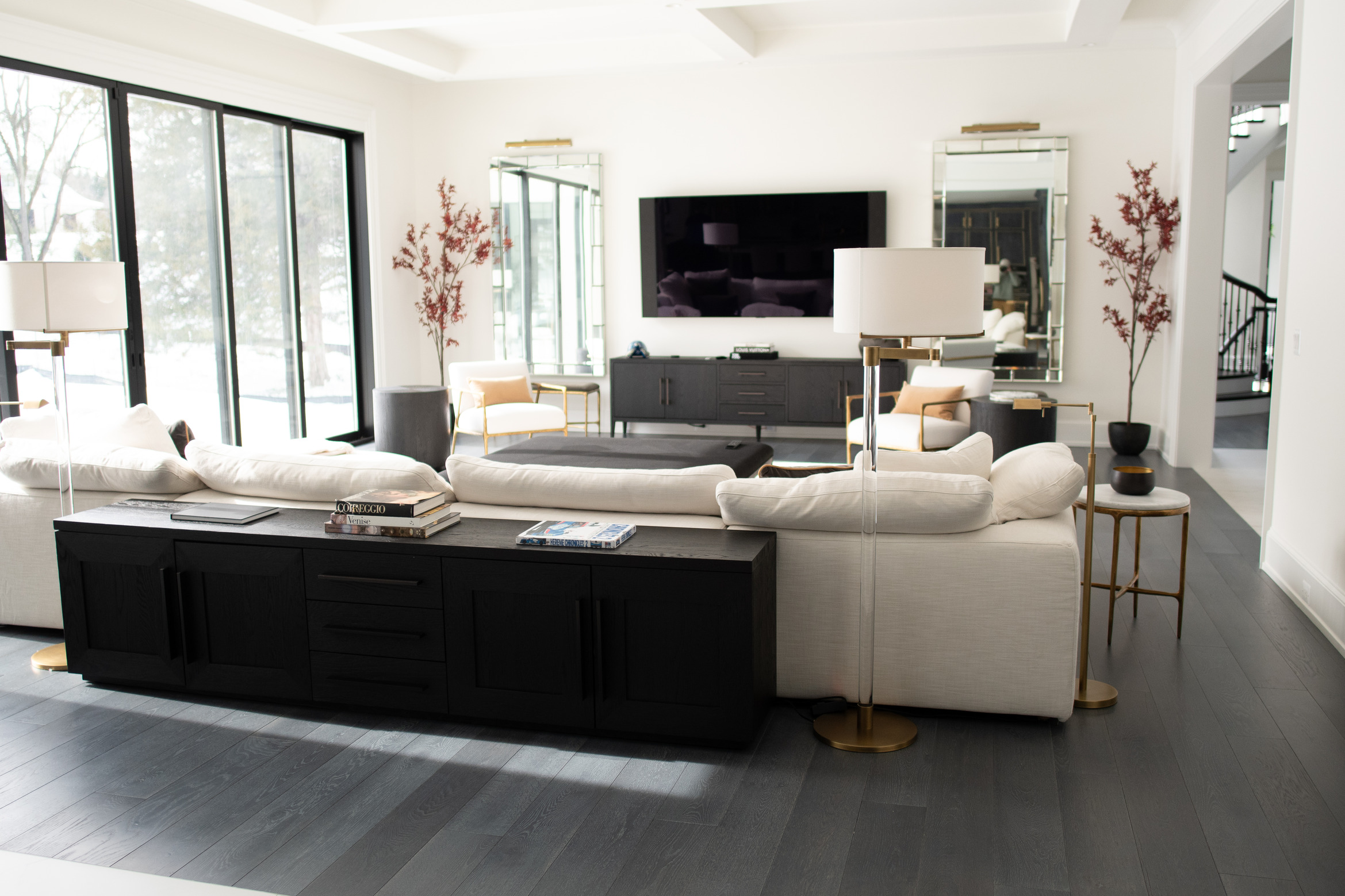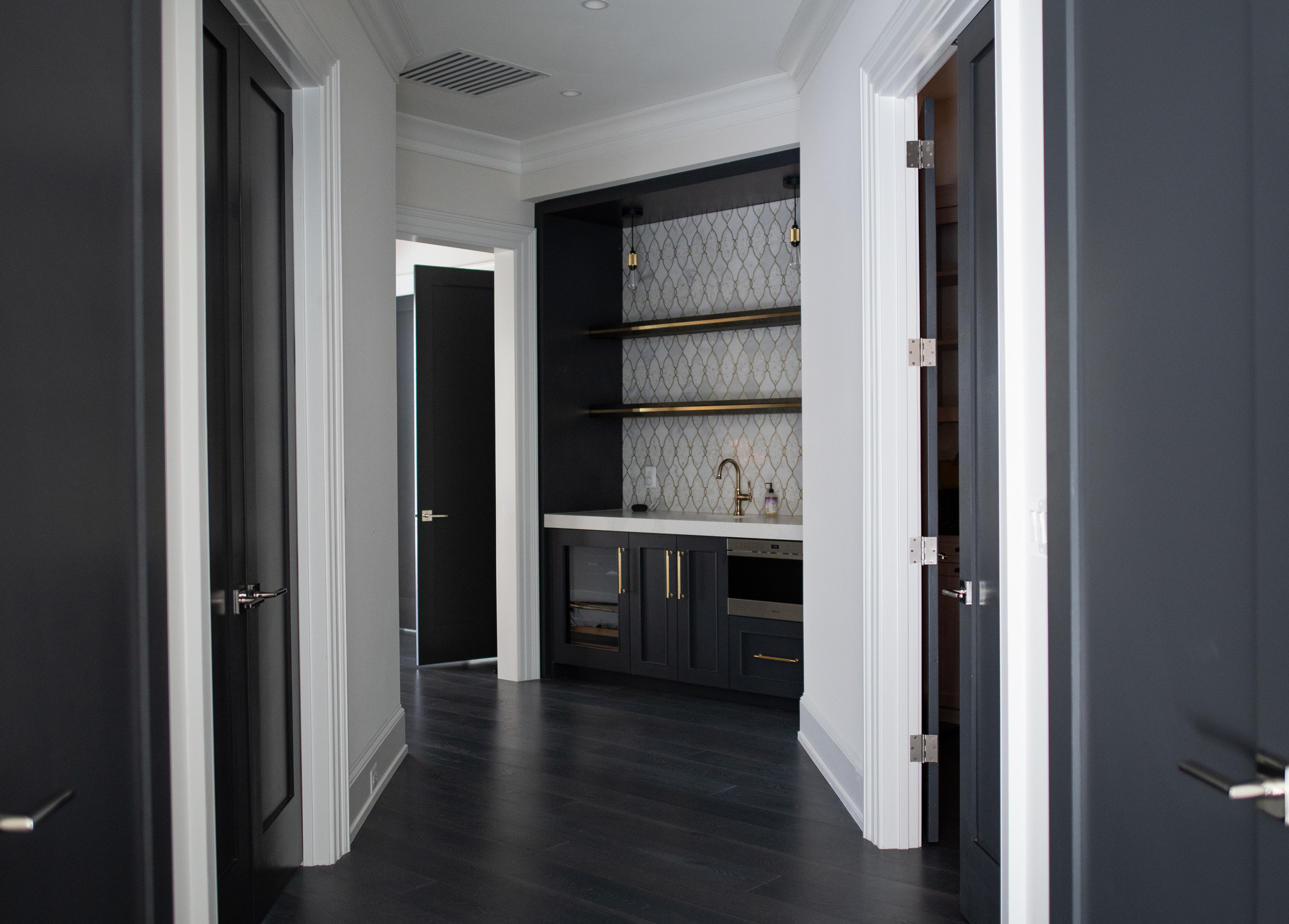 A breathtaking design and build brought to life by Joy Custom Design Build — the perfect project to showcase our custom “Yampa” finish on ¾” x 7” White Oak. Inspired by the deep, mysterious waters once navigated by Chester W. Chapin’s yacht, Yampa blends the rich, dark depths of the ocean with the cool sophistication of steel for a unique, modern aesthetic. Whether complementing dark accents or creating bold contrast in a bright space, see how this elegant finish adds timeless character to this interior.